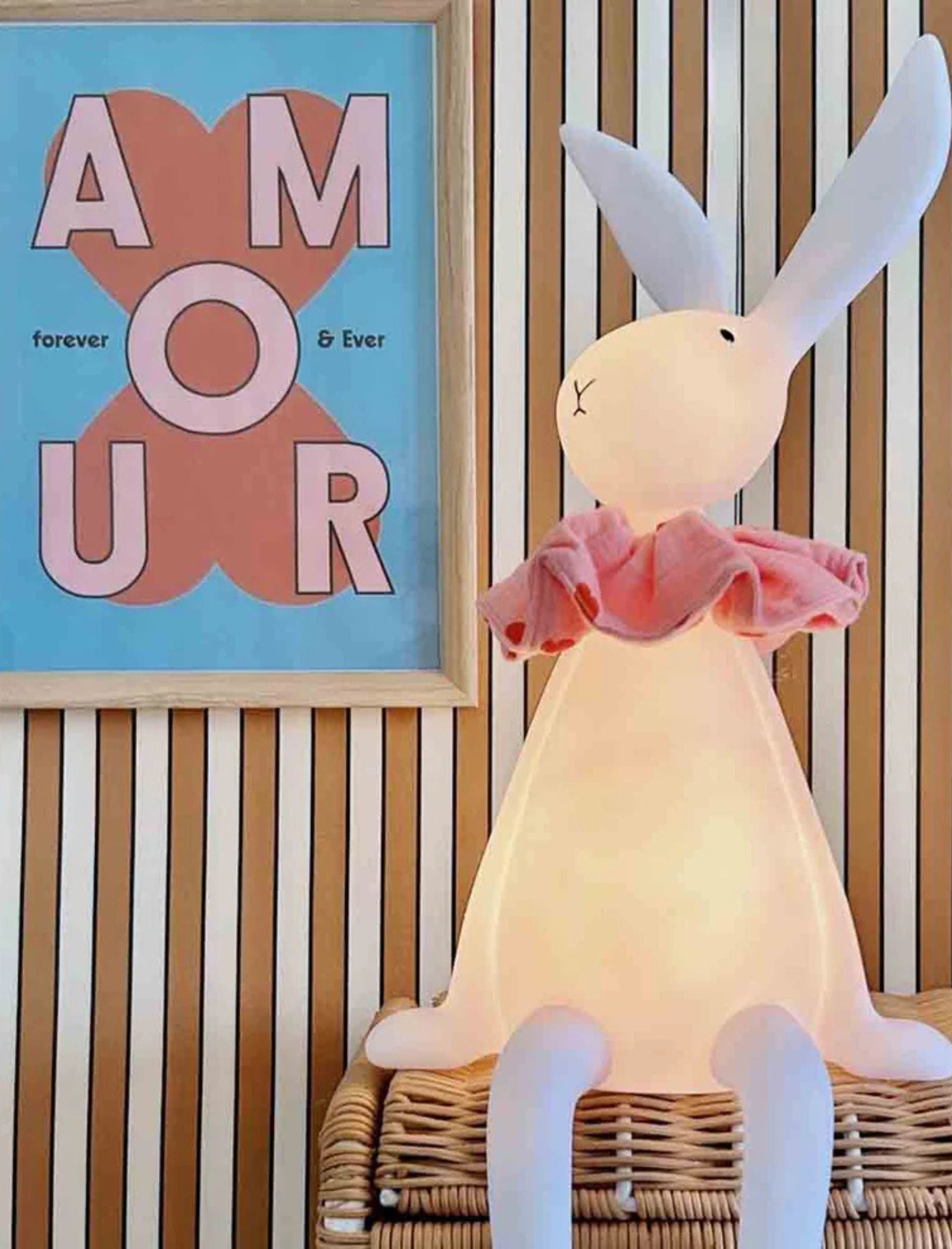 Ternura, diseño y un toque de magia en una sola pieza. La lámpara Joseph es el detalle perfecto para iluminar con suavidad cualquier rincón especial. Su luz tenue crea una atmósfera acogedora, ideal para acompañar las noches de los más pequeños o darle un aire encantador a tu espacio favorito. Con su diseño minimalista en forma de conejito, Joseph no solo es funcional, sino también una pieza decorativa original que conquista miradas. ¿Buscas un regalo único y lleno de encanto? Aquí lo tienes.