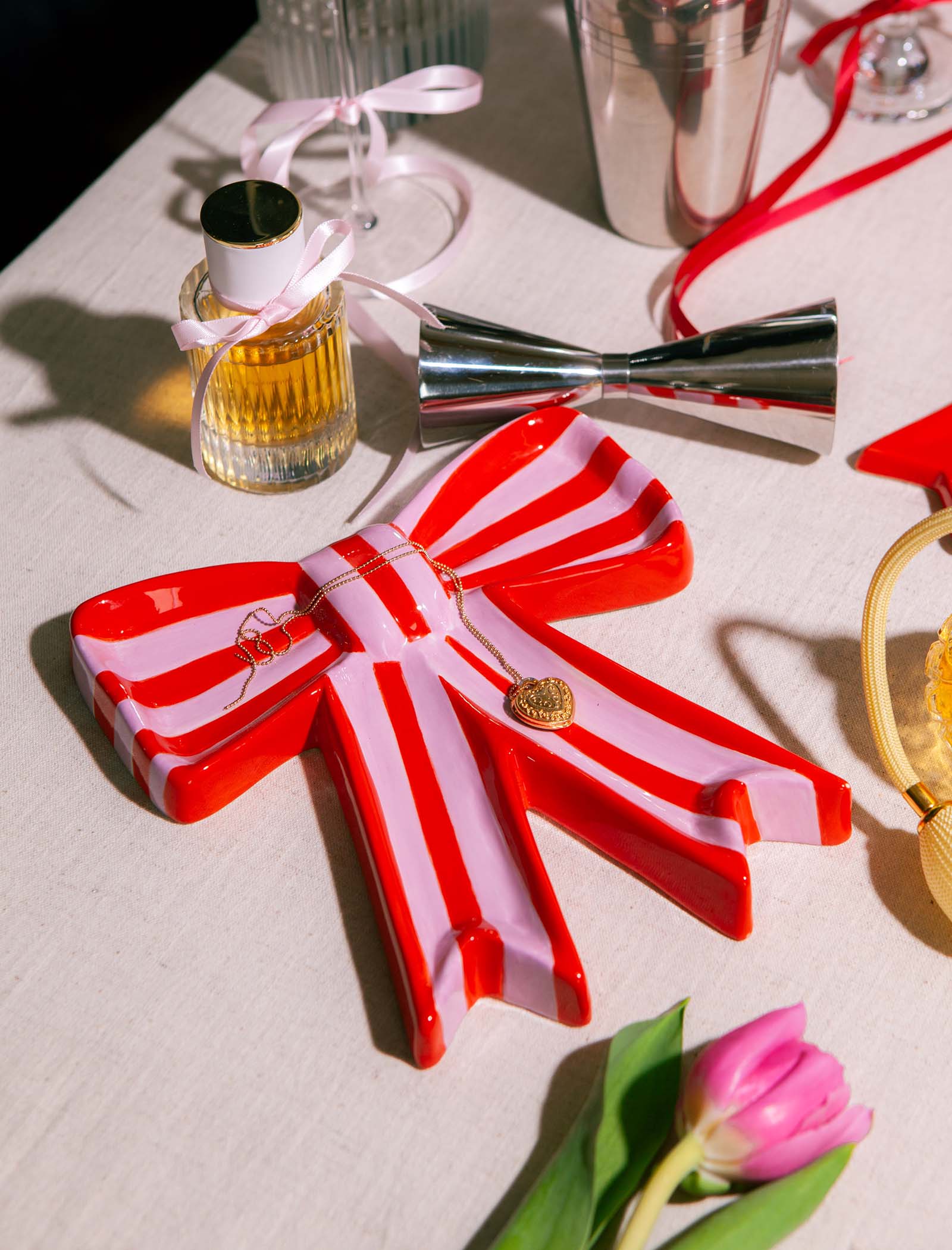 Esta bandeja de baratijas es el toque perfecto de elegancia y funcionalidad para tu espacio. Hecha a mano en cerámica, su diseño en forma de lazo captura la esencia del estilo sofisticado y juguetón. Ideal para organizar tus objetos más preciados, desde llaves hasta joyas, esta bandeja no solo te ayuda a mantener el orden, sino que también se convierte en un hermoso detalle decorativo. Un accesorio imprescindible para las mujeres que aprecian la combinación de estética y practicidad. Dale un toque único a tu mesa o tocador con esta pieza que, además de funcional, es una verdadera obra de arte.