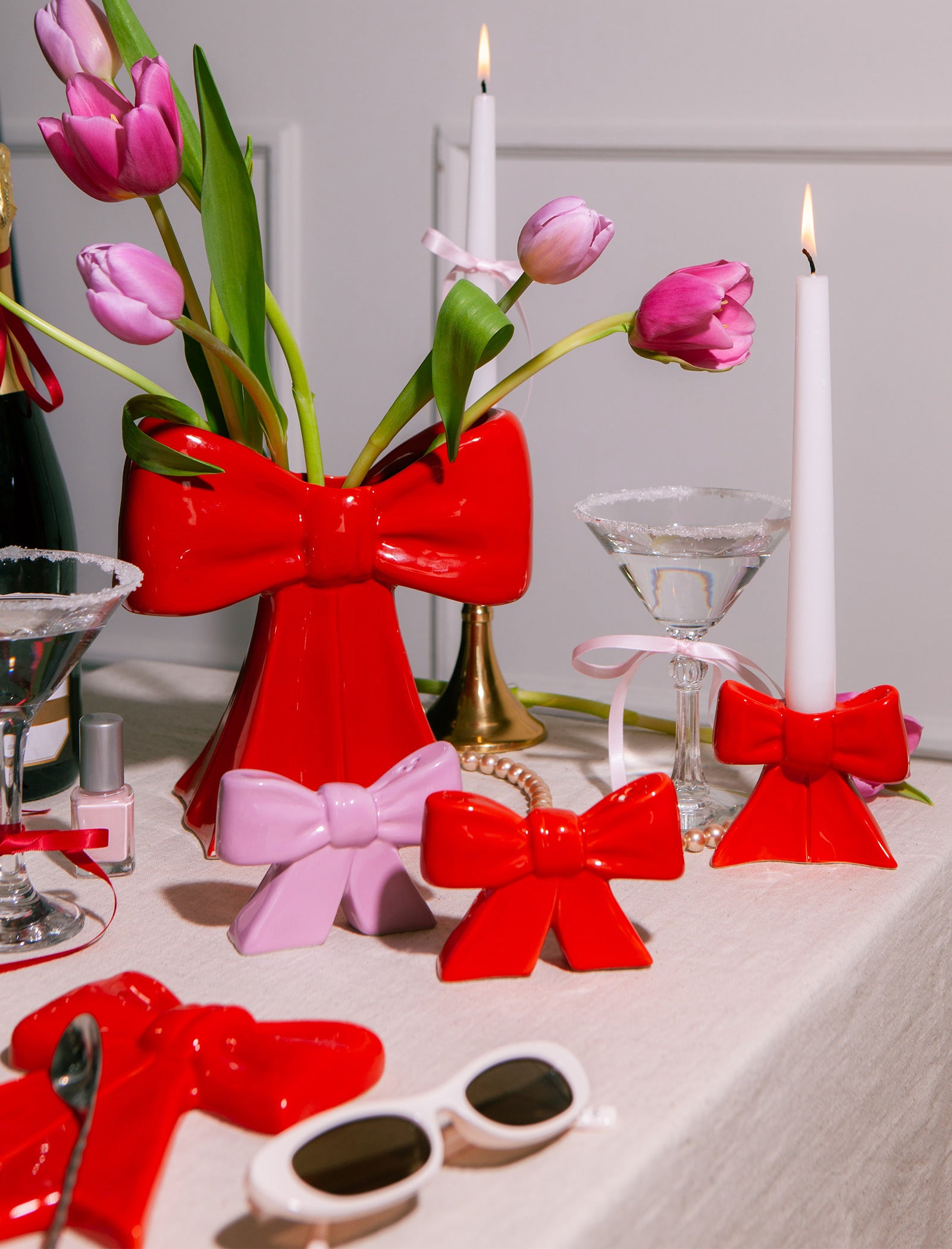 Añade un toque de encanto coqueto y elegante a tus cenas a la luz de las velas con el Red Ribbon Con su diseño en forma de lazo rojo brillante, este candelabro no es solo un accesorio, es la definición de glamour y diversión. Perfecto para iluminar esos momentos especiales o simplemente para darle un toque chic a cualquier espacio, su estilo atrevido y su forma icónica lo convierten en un imprescindible para quienes buscan destacar hasta en los más mínimos detalles. Encender una vela nunca fue tan sofisticado