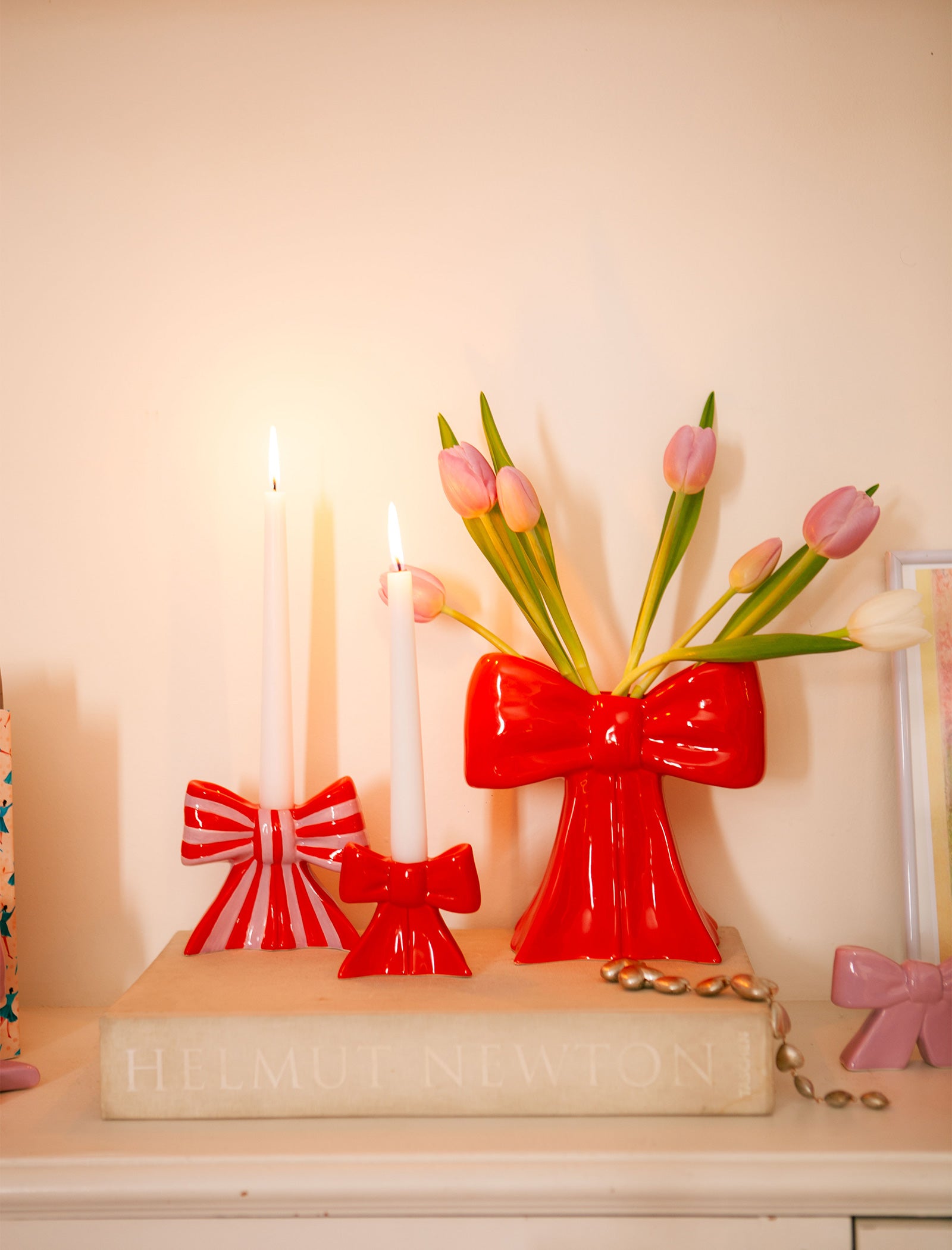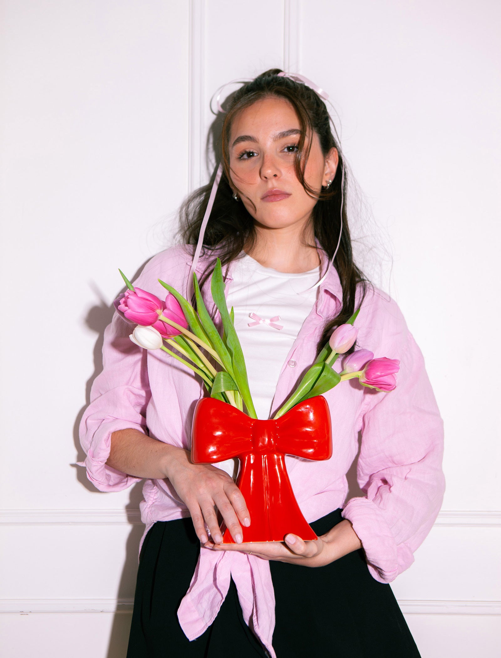 Este florero no es solo un objeto, es una declaración de estilo en sí mismo. Con la forma de un lazo en un rojo vibrante, está inspirado en el etéreo mundo del ballet y el caprichoso encanto de la coquetería: un símbolo de celebración, feminidad y lujo. Perfecto para las amantes del diseño que buscan un toque divertido y glamuroso en la decoración de su casa, su acabado brillante y forma impecable se convierten en el centro de todas las miradas. Ya sea que lo uses con tus flores favoritas o como pieza decorativa independiente, nuestro florero Arco envuelve tu espacio en una sofisticación juguetona que nunca pasa desapercibida.