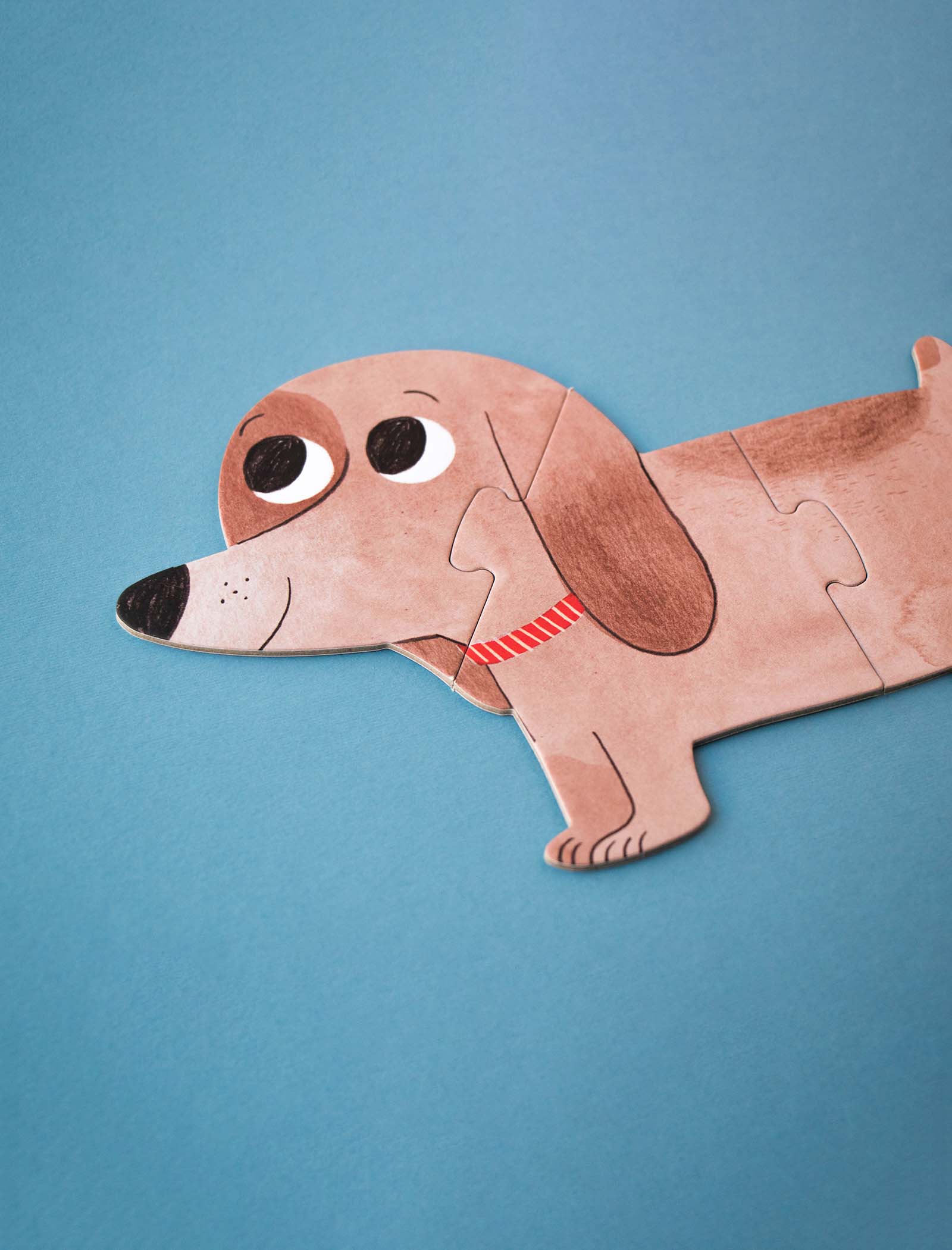 7 puzzles reversibles de 3 piezas para que los más pequeños de la casa aprendan y se divertan con sus mascotas más queridas.
