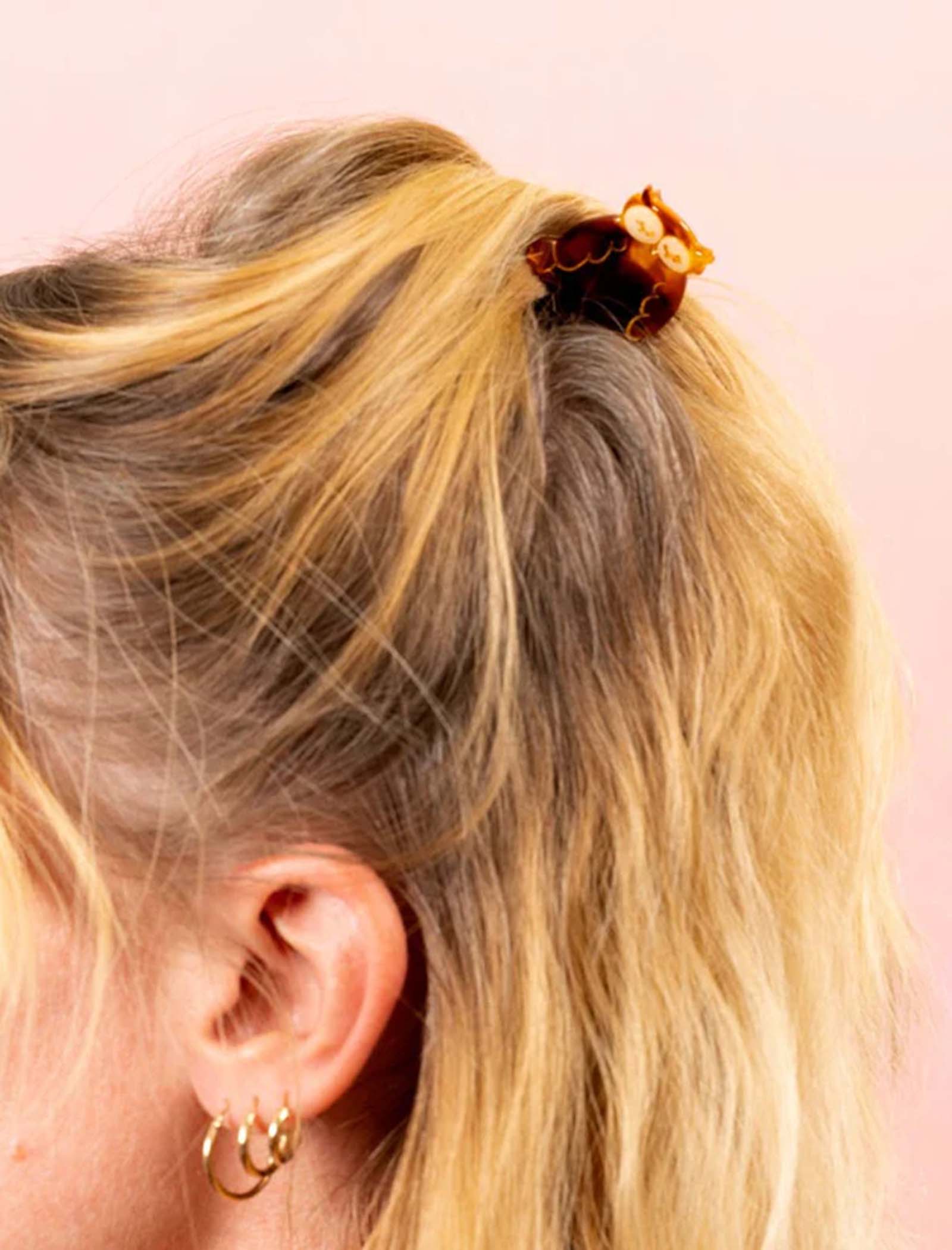 Cuando el estilo y la tranquilidad se encuentran: la pinza para el cabello en forma de búho es el accesorio perfecto para quienes aprecian lo peculiar. Con ojos cerrados en una siesta tranquila y alas dobladas, esta accesorio emula la calma que se siente después de un día ajetreado. Hecha de acetato marrón, con detalles dorados que la hacen brillar con elegancia, esta pinza está diseñada para adaptarse a todo tipo de cabellos desde los más finos hasta los más voluminosos. Un toque de originalidad y diversión para cualquier peinado que merezca destacarse. ¡Atrévete a llevarla y deja que tu cabello hable por ti!