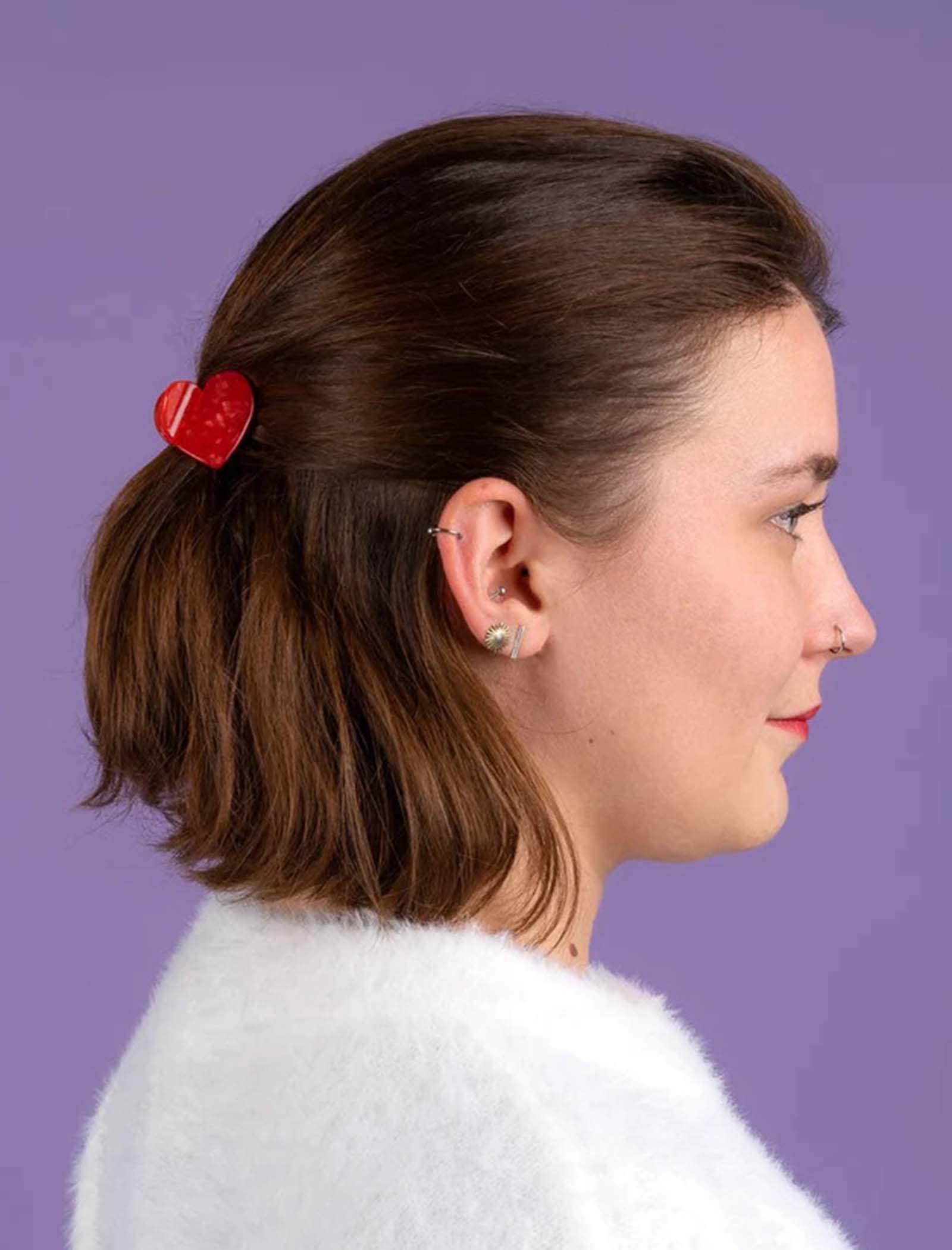 Enamórate de tu peinado con esta pinza para el cabello en forma de corazón rojo. El color vibrante de este accesorio le da un aire dulce y romántico, perfecto tanto para cabellos largos como para esos peinados más recogidos. Ideal para regalar o para añadir un toque de encanto y ternura a tu look diario. Su diseño moderno y versátil se adapta a cualquier ocasión, haciendo que tu cabello brille con una chispa especial. Haz de tu peinado una declaración de amor con esta pinza que exuda frescura y estilo.