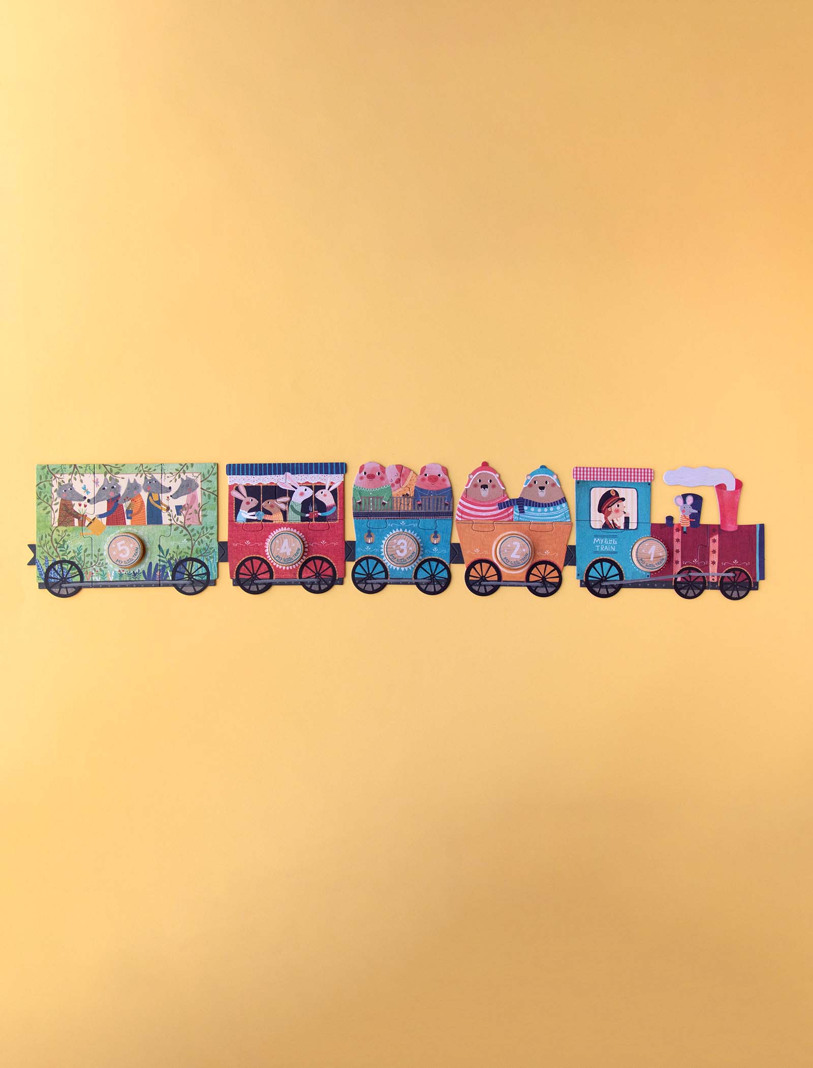¡Pasajeros, al tren! Una locomotora y unos vagones muy especiales con unos viajeros muy peculiares: osos, cerditos, conejos, lobos, pingüinos y muchos otros animales que te harán disfrutar de un viaje de lo más divertido. ¡Chu, chu! ¡Te esperamos!