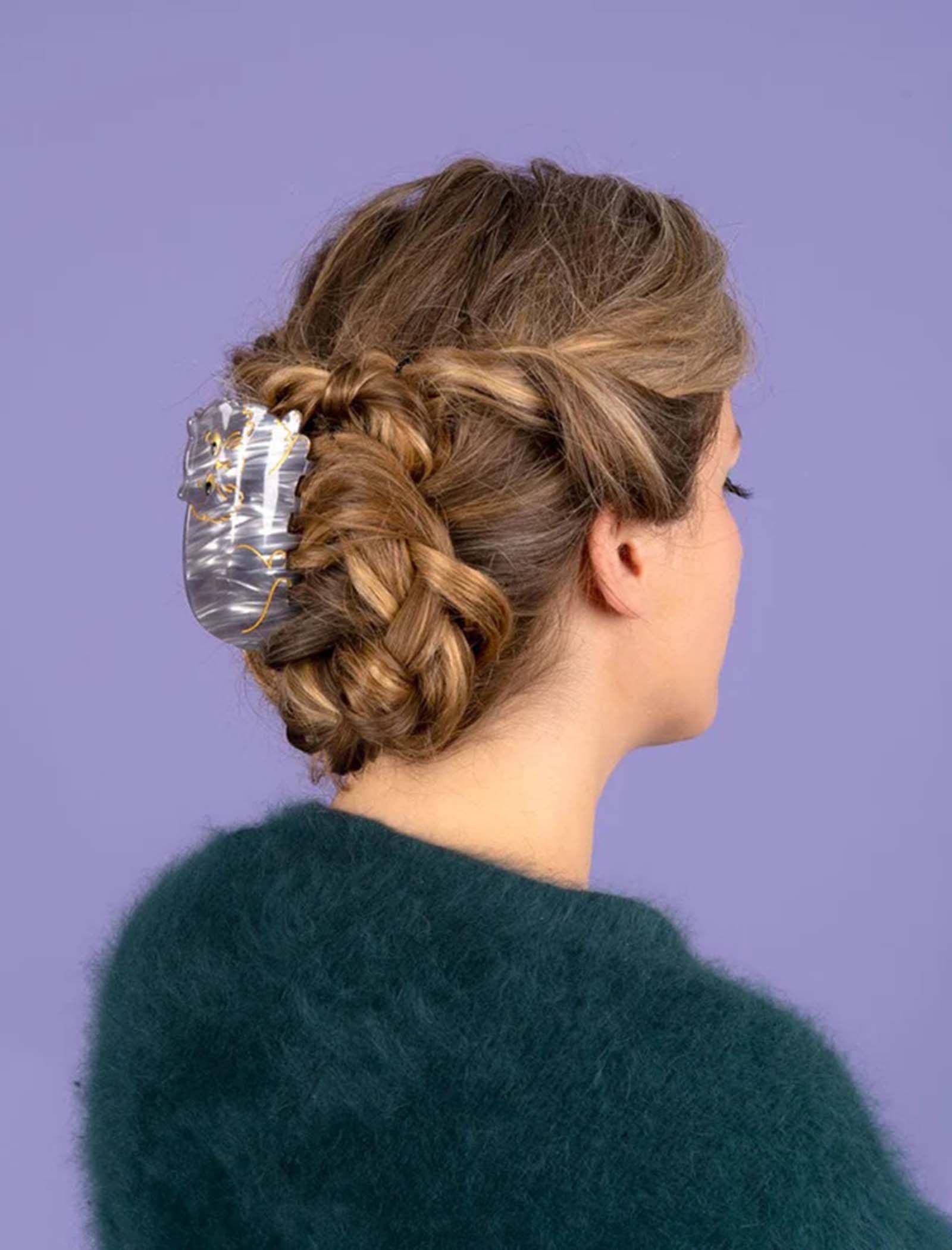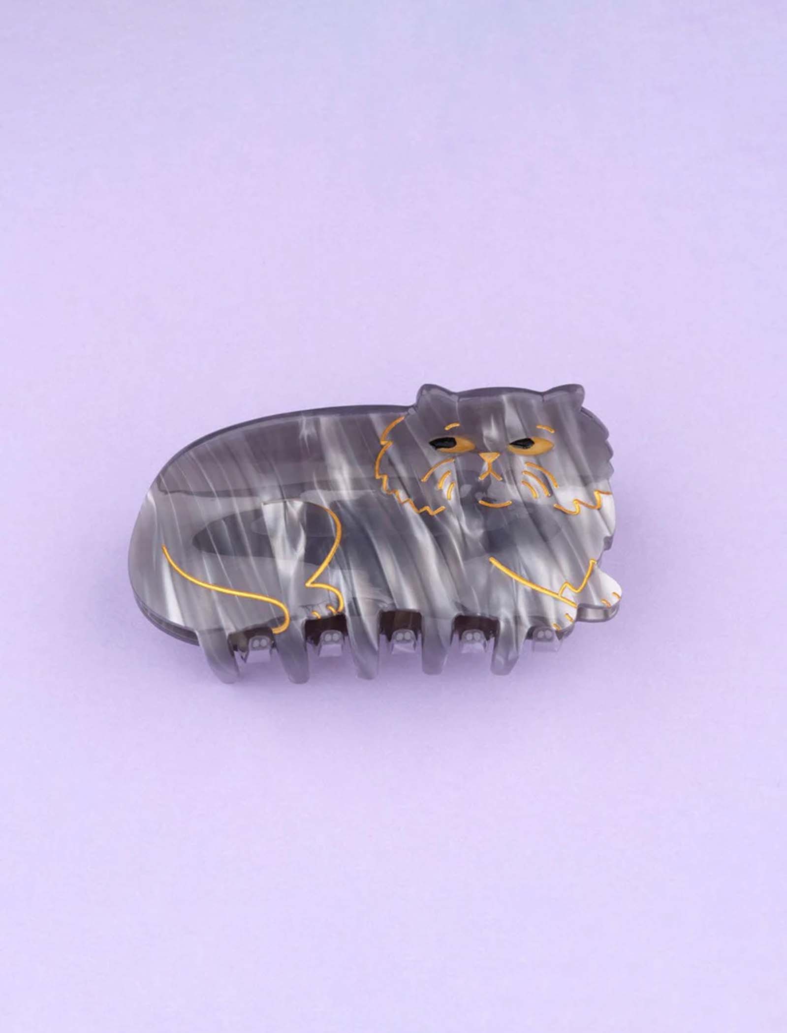 Hemos elegido un bonito gris iridiscente para esta pinza para el pelo que imita a la perfección el pelo suave y sedoso de este precioso felino. ¡Viva Suzette!