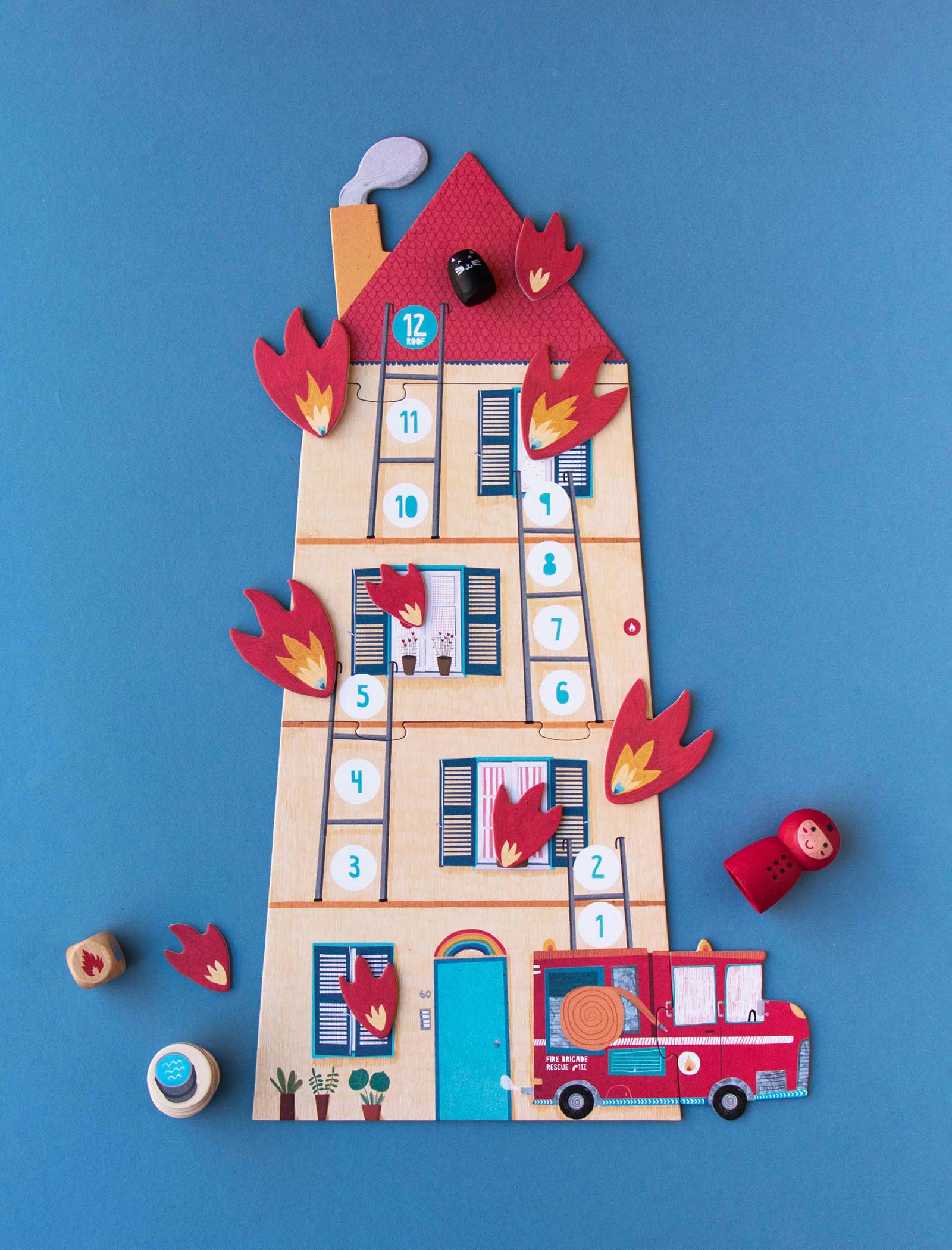 Un juego de mesa cooperativo y familiar en el que ayudaremos al bombero a salvar al gato atrapado entre las llamas. Fabricado con mucho cariño en Barcelona.