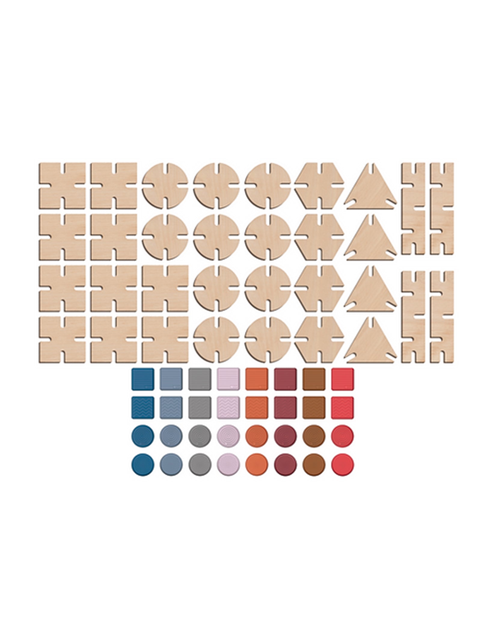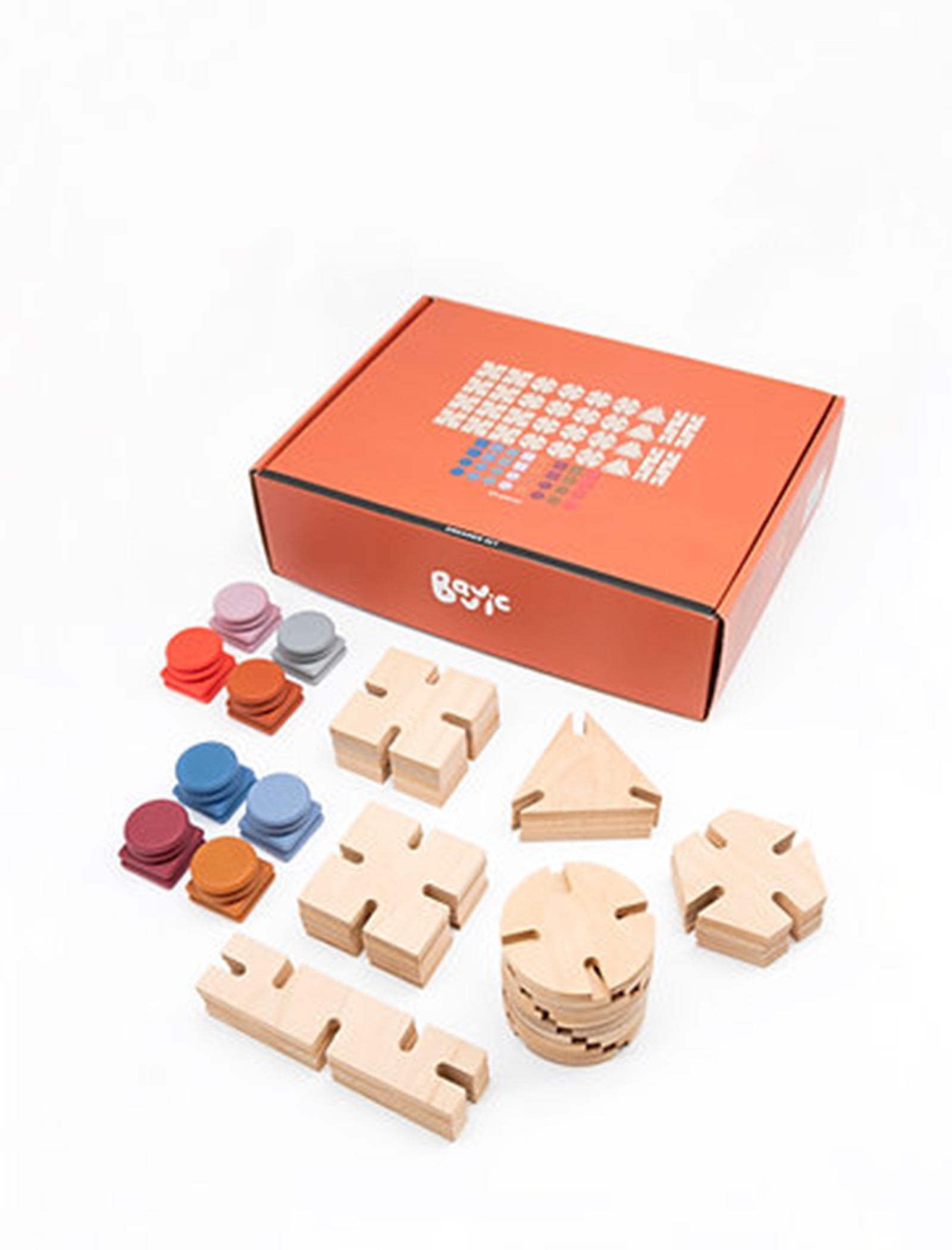 Entra en un reino donde más de 2 kilogramos de bloques de madera de haya prístina esperan a tu imaginación, complementados con sus 32 conectores de silicona en 8 tonos fascinantes. Bienvenido al BAVVIC DREAMER SET.