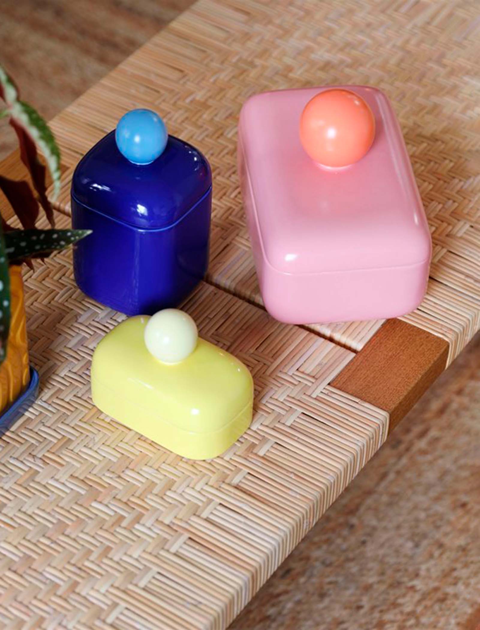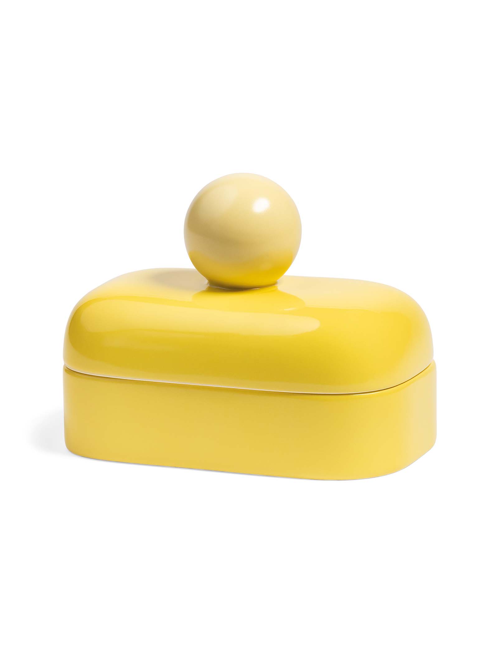 Este tarro de diseño es el detalle sofisticado que eleva cualquier espacio elegante y moderno. Fabricado en dolomita con una tapa de intenso amarillo y un asa en forma de esfera a juego, combina funcionalidad y estética en una pieza única. Perfecto para almacenar pequeños objetos con estilo, este tarro es ideal para añadir un toque de diseño contemporáneo a salones, oficinas o dormitorios. ¡Haz que tu espacio destaque con este tarro decorativo que es pura distinción!