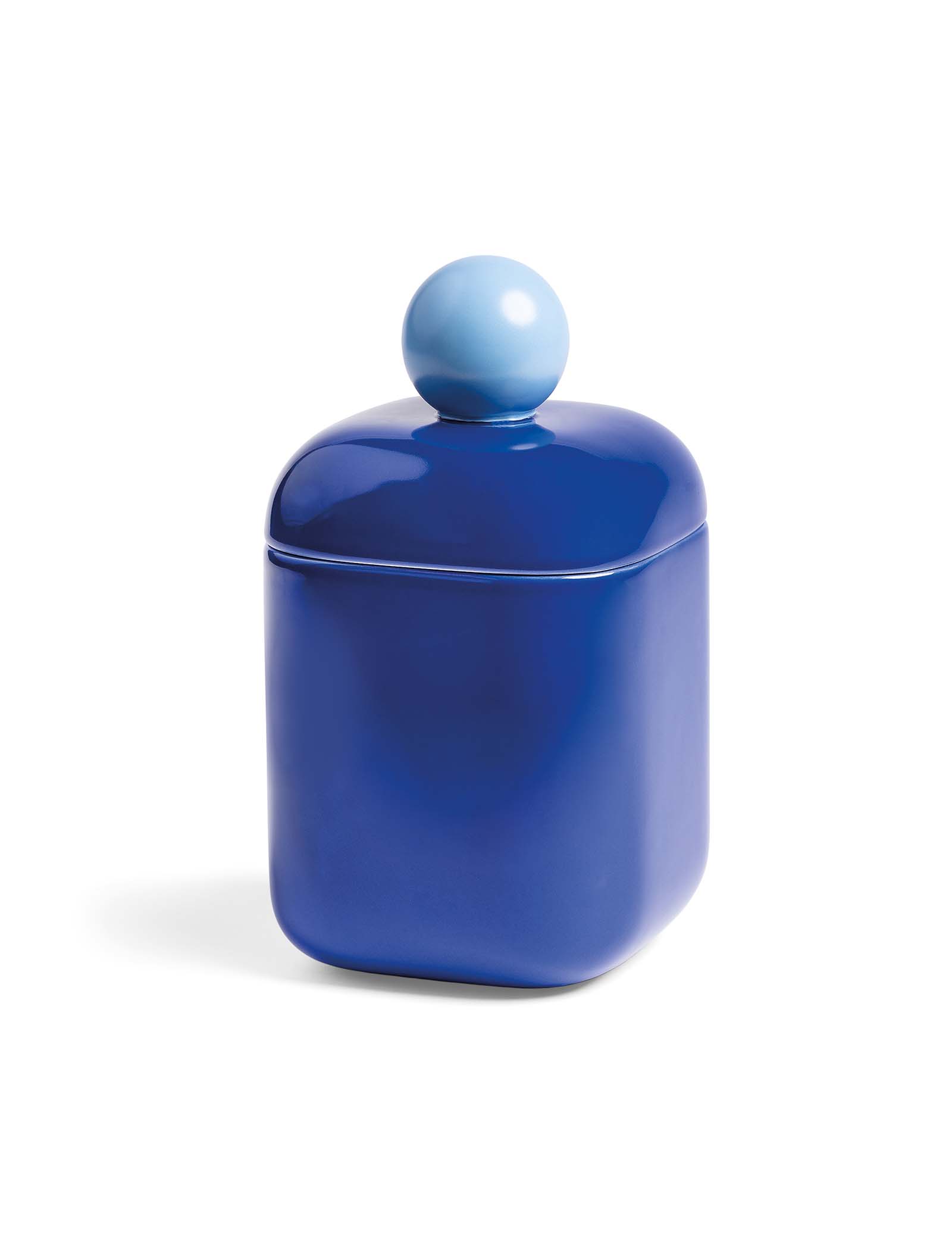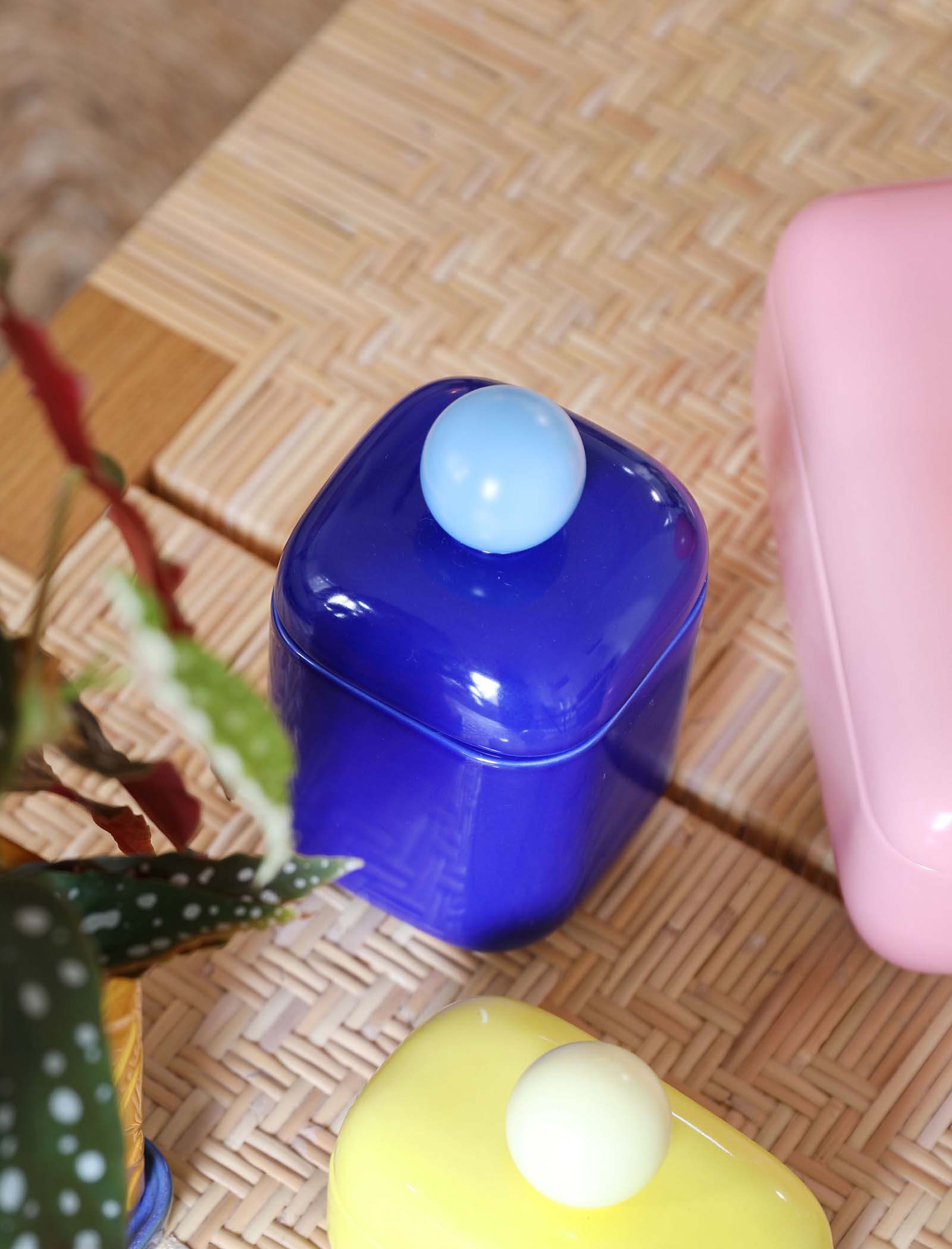 Añade un toque de lujo moderno a tu estancia con este tarro de diseño en dolomita. Su acabado en azul intenso y su tapa con una esfera en azul claro crean una combinación de colores que irradia sofisticación. Ideal para almacenar pequeños tesoros o como pieza decorativa, este tarro no solo organiza, sino que transforma el ambiente con su presencia elegante y contemporánea. ¡El complemento perfecto para un hogar que respira diseño!